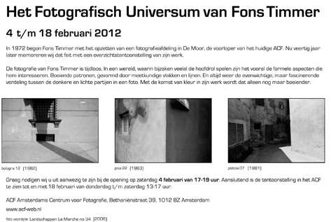 Voor recente exposities klik hier download "Fank Lubbers over de foto's van Fons Timmer"